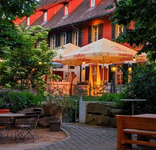 A really nice location for different reasons. Stopping here as biker or cyclist you have a nice beer garden with tasty meals and a cool drink outside at the shore of the little lake. As a hungry family you will have a rich meal for good prices around 20-30 Euro per person. As a couple you can celebrate your marriage here with first class service and an awesome atmosphere at the border of the Black Forest. So come here, try it and never forget it.