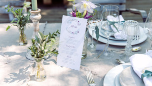 Konzeption und Gestaltung einer individuellen Menükarte auf Basis des Hauptdesigns/der Einladung (nicht enthalten ist der Aufwand für Druck- und sonstige Materialkosten. Weitere Kosten sind abhängig von Menge, Größe und Papiersorte)