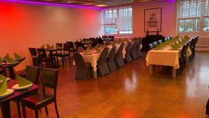 Ein Caterer muss extern dazu gebucht werden, ebenso DJ. Eine technisch sehr hochwertige Musikanlage ist vorhanden und kann genutzt werden. Eine Gastronomie-KĂĽche ist ebenso vorhanden und kann ggf. mitgemietet werden.