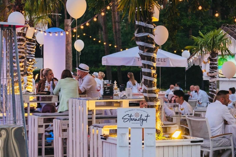 Ein Hauch von Sylt, direkt am See, stilistisch komplett in weiß, Sand und See nur 100m entfernt für 30-150 Personen möglich.