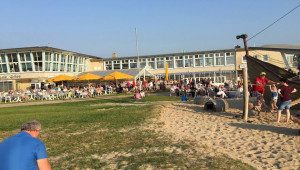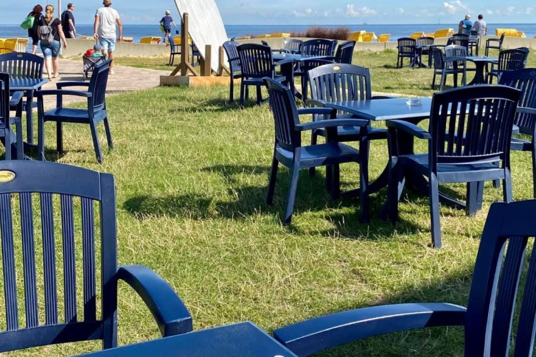 Eine super Lokation. Super nettes und freundliches Personal. Essen sehr frisch und da nimmt man auch gerne etwas Wartezeit in Kauf. Jeder Tisch und jeder Stuhl wurde nach Gästewechsel desinfiziert. Klare AHA Regel wird eingehalten und drauf geachtet. Egal ob im Restaurant oben oder im Strand-Imbiss Bereich. Sehr zu empfehlen.