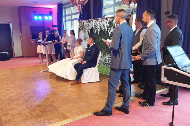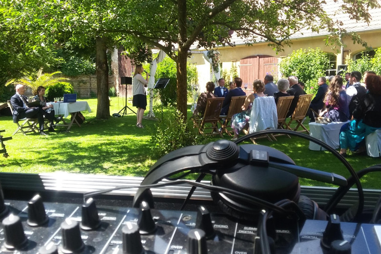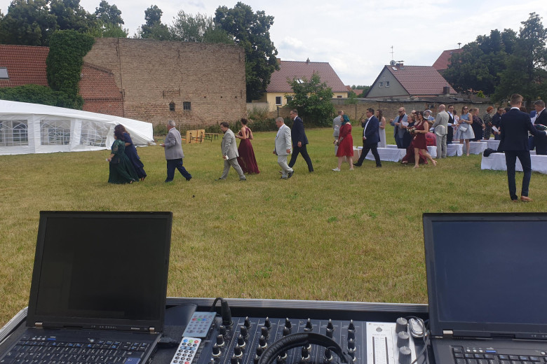 Wir hatten uns für Matthias als DJ auf unserer Hochzeit entschieden und es nicht bereut! Die Herausforderung war groß, denn wir wussten im Vorfeld, dass wir Musik/Technik an 4 Standorten brauchten: 1. während der Trauung im Freien 2. während des Anschnitts der Torte vor dem Feiersaal 3. beim Kaffeetrinken 4. abends beim Feiern und Tanzen Das hieß 4x aufbauen, 4x abbauen und zwischendrin die Feiergemeinde unterhalten. Matthias hat das großartig gewuppt, Auf- und Abbau der Technik lief im Hintergrund, hat hat die Leute neben guter Musik mit lustigen Spielen unterhalten. Die mitgebrachte technische Ausrüstung war 1A. Wir können Matthias sehr empfehlen, er ist nicht nur DJ sondern auch Entertainer. Danke nochmal, Matthias, dass du unseren Hochzeitstag so großartig musikalisch begleitet hast!