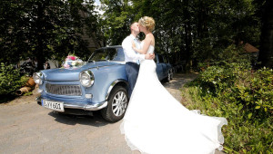 Chauffeurdienst und Vermietung von nostalgischen Trabant Hochzeitslimousinen, sogenannten XXL Trabis als exklusives Hochzeitsauto für den schönsten Tag Ihres Lebens.