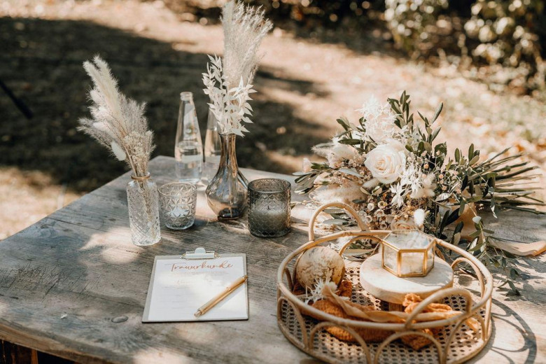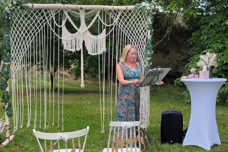 vielen lieben Dank für unsere wunderschöne Hochzeitszeremonie.Schon bei den Vorbereitungen haben wir uns sehr wohl gefühlt und das, obwohl wir unser Gespräch aufgrund der Distanz und kurzfristigen Anfrage nur via Videocall durchführen konnten. Mit geschickten und gezielten Nachfragen hast Du uns so manche Anekdote entlockt und uns zum Nachdenken gebracht, was wir aneinander lieben und wofür wir stehen. Durch Deine herzliche, liebenswürdige, kreative und souveräne Art hast Du zu unserer Hochzeit einen wunderbaren Beitrag geleistet! Uns, und auch unseren Gästen hat es sehr gut gefallen. Das Feedback war durchgehend positiv.