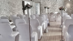 Wir vermieten Stuhlhussen, Stehtischhussen, Tischdecken und vieles mehr für deine Hochzeit.