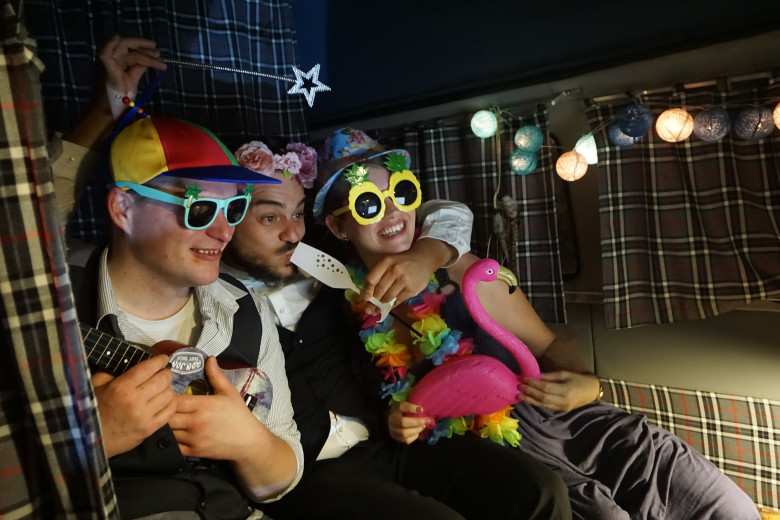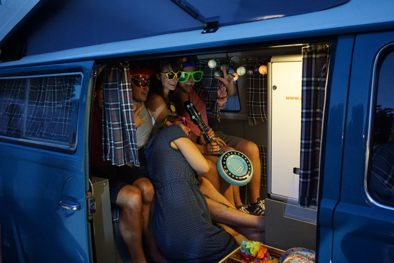 Statt engem Passbildautomat steht dir und deinen Gästen das Innere des Bullis zur Verfügung und lädt zur ausgelassenen Fotosession ein. Die Geschwister sind alle mit Leuchtschrift "Fotos" ausgestattet, damit eure Gäste den Weg in unsere Fotobusse finden!