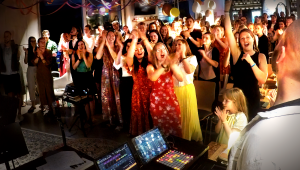 Ich sorge dafür, dass es alles vorhanden ist, was wir für Eure Hochzeit brauchen: Musik, Tontechnik, Lichttechnik, und einen DJ, der: