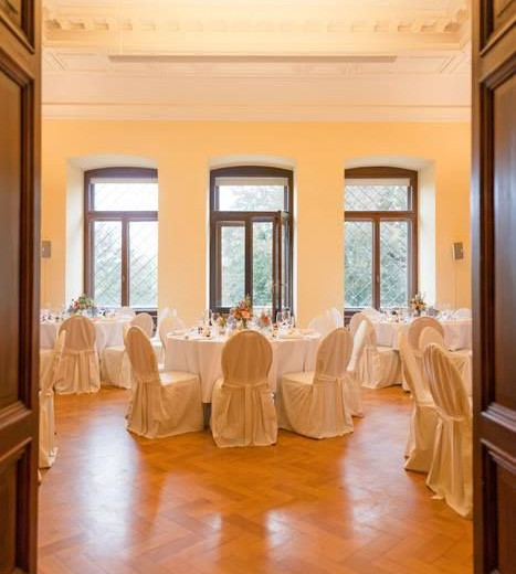 Die Villa bietet im Stil der italienischen Adelshäuser die perfekte Kulisse für Ihre Traumhochzeit. Die liebevoll und aufwendig restaurierten Innenräume, große Balkone, weitläufige Grünflächen, eine imposante Treppenanlage und die sonnenverwöhnte Lage am Osthang des Goetheparks bieten das passende, romantische Ambiente für Ihren ganz besonderen Tag. Die feierliche Zeremonie können Sie, je nach Jahreszeit, in der Villa oder unter dem Blätterdach der hundertjährigen Rotbuche im Garten begehen. Sektempfang im Park, Kaffee auf der Sonnenterrasse, Abendessen in den Festsälen mit Blick über den Goethepark, Digestiv am Kamin und der Hochzeitswalzer im Atrium – in der Villa bleiben keine Wünsche offen. Bei uns ist jede Braut eine Prinzessin. Ihren ganz besonderen Tag müssen Sie mit niemandem teilen, denn wir vermieten die Villa immer exklusiv an nur ein Hochzeitspaar.