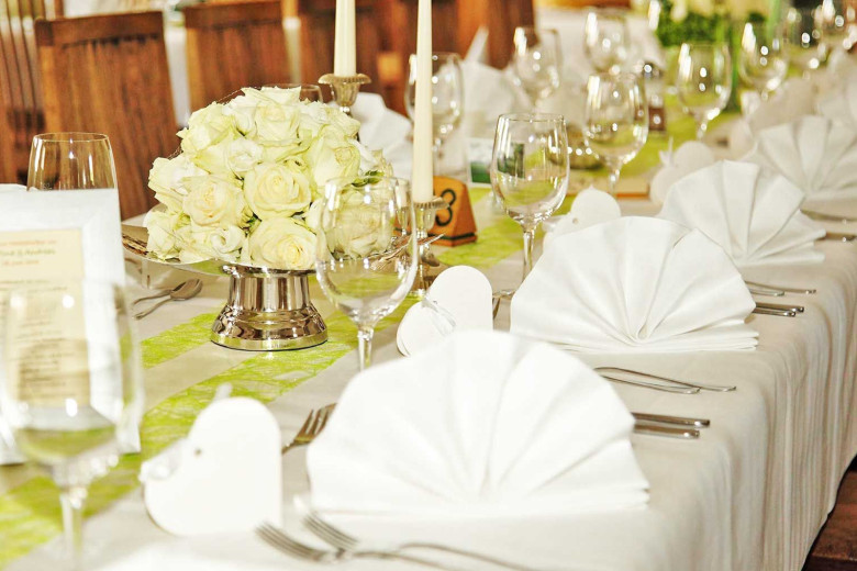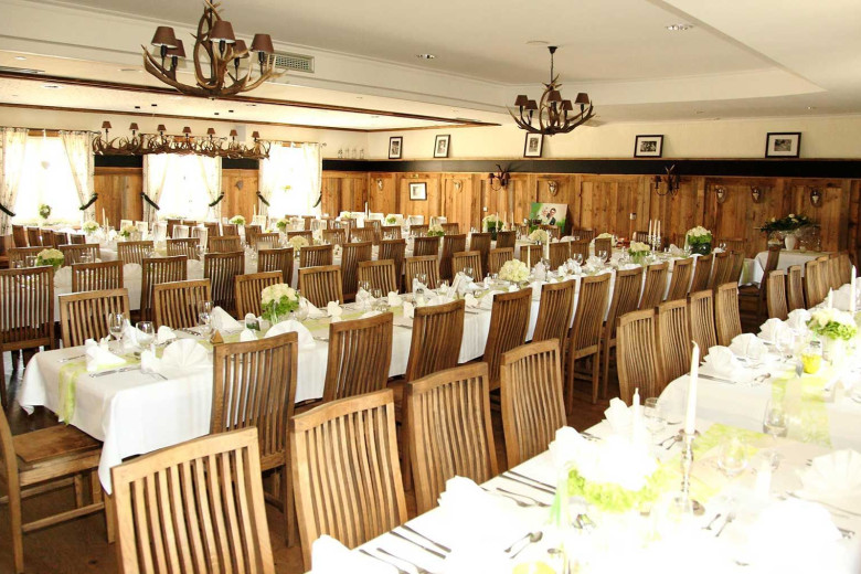 Eine helle, lichtdurchflutete Atmosphäre erwartet Sie. Elegant geschmückte Tische und ein perfekter Service machen Ihre Hochzeitsfeier zu einem unvergesslichen Tag. Rund-um-Sorglos-Paket Feiern zum Festpreis zusammen.