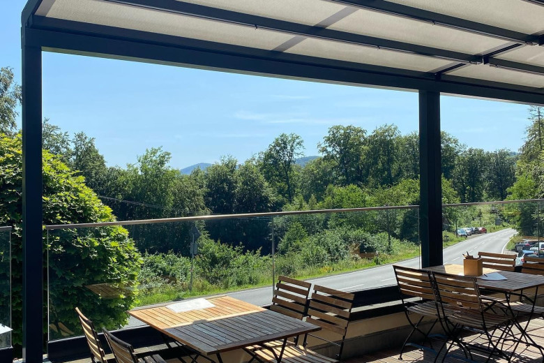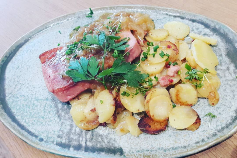 Very delicious food and gorgeous view of the Laach lake - former volkano
