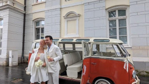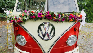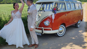 Zu Deinem Hochzeitstag gibt es die einmalige nostalgische Ergänzung – mit einem von Grund auf restaurierten VW Samba Bus. Du sagst Deinem Chauffeur, wo es hin gehen soll: Abholen zu Hause, Stopp an der Kirche, zur Fotolocation an Deinem Lieblingsort und am Ende zu Deinem Empfang und der Hochzeitsparty.