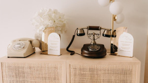 - Telefon Mrs. Sophie (vintage beige) - kostenloser Hin- & RĂĽckversand - ca. 100 Std. Aufnahmezeit - Integration eurer Bandansage - 2 Aufsteller, inkl. Anleitung - Downloadlink mit allen Sprachnachrichten nach Veranstaltung