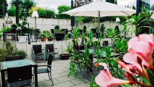Die sonnenverwöhnte Terrasse ist der perfekte Ort zum Ankommen. Dem Empfang unter freiem Himmel steht hier nichts im Wege. Auch das Get-Together und die anschließende freie Trauung erfreuen sich hier großer Beliebtheit.
