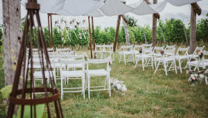 Das Plateau im Weinberg ist die perfekte Kulisse für die freie Trauung im Grünen. Umgeben vom zarten Grün der Weinreben öffnet sich das schöne Fleckchen mit der Pergola, die die Gäste vor der Sonne schützt.