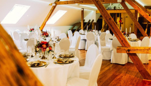 Das geräumige Weindach ist das Herzstück des Weinguts. Die hohen Decken und die rustikalen Balken sorgen für Scheunenflair, während die dezente Beleuchtung und ein schöner Holzboden den Spagat zur eleganten Location mit Leichtigkeit schaffen.