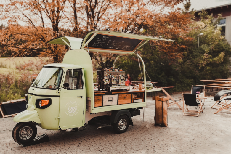 Unsere hochwertig und individuell umgebauten Kaffeebars sorgen mit ihrem einzigartigen Stil für eine besondere Atmosphäre und sind ein Blickfang auf deiner Hochzeit!