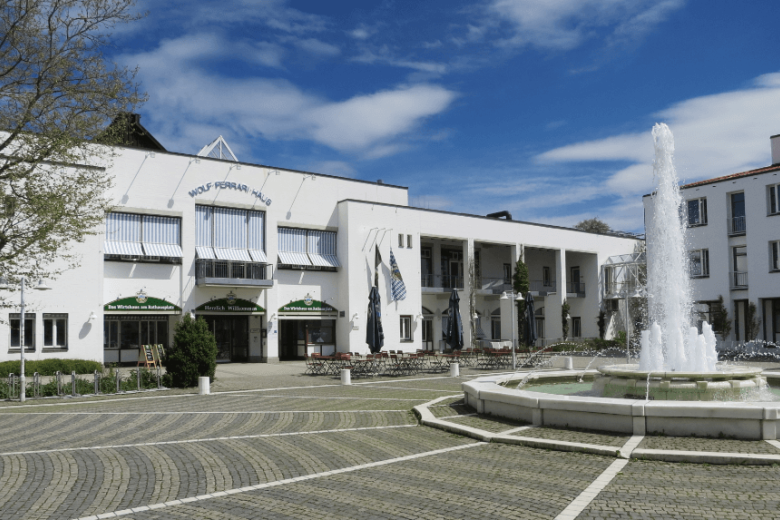 Das Wolf-Ferrari-Haus wurde 1986 eröffnet und befindet sich im Ottobrunner Ortszentrum direkt am Rathausplatz.