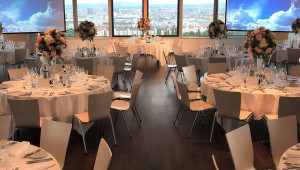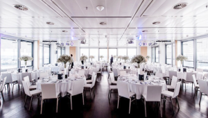 Mit gleich drei unterschiedlichen Veranstaltungsebenen eröffnet die Location genügend Raum für große Hochzeitspläne. Herzstück ist die Sky Lobby mit ihrer weitläufigen Terrasse, von der Sie einen phänomenalen Panoramablick über die Donau in die City genießen. Das dabei unverzichtbare Glas Champagner holen Sie sich im stylishen Barbereich, oder lassen es sich galant servieren. Nur ein paar Stufen trennen Sie von der darunter liegenden Sky Hall, die sich perfekt als eigene Restaurantebene eignet und sich zu später Stunde als beliebter Rückzugsort für tanzmüde Füße erweist. Apropos Rückzug: der Aus- bzw. Eingang befindet sich auf Ebene 19, daher auch der Wolken-Name. Mit Ihnen feiern in der Location: idealerweise zwischen 80 und 150 Gäste (mit Gala-Bestuhlung).