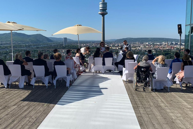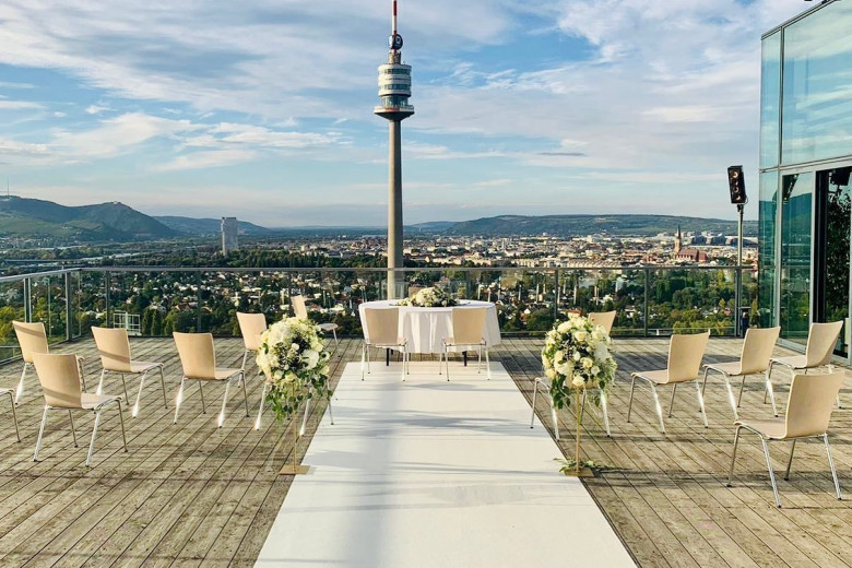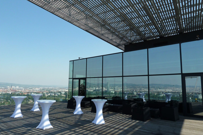 Mit einem 360° Panorama in einen neuen Lebensabschnitt blicken? Diese höchst erfreuliche Perspektive zeichnet die Location aus! Viel Glas, dunkle Holzböden und ein besonders edles Interieur lassen ein „Wohngefühl“ wie in einem Penthouse aufkommen und stehen in einem interessanten Kontrast zum weitläufigen Grün des Donauparks und zur spektakulären Skyline ringsum.