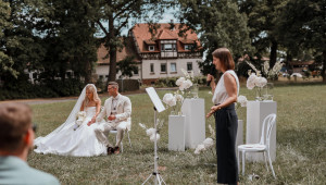 Eine Freie Trauung ist eine individuelle und persönliche Trauzeremonie, bei der ihr als Paar im Mittelpunkt steht. Anders als bei einer standesamtlichen oder kirchlichen Trauung gibt es keine festen Regeln oder Vorschriften. Die Trauzeremonie gestalte ich als eure Traurednerin ganz nach euren Wünschen und diese kann an jedem Ort stattfinden – ob im Garten, auf einem romantischen Schloss oder sogar am Strand. Der bedeutender Vorteil der Freien Trauung ist, dass sie vollkommen auf eure Geschichte, eure Werte und eure Vorstellungen abgestimmt wird. Ich als Traurednerin begleite euch dabei, eine Hochzeitszeremonie zu kreieren, die eure Liebe widerspiegelt. Dabei können wir persönliche Rituale einbauen, bedeutende Musikstücke wählen oder Beiträge von Familie und Freunden integrieren. Eine Freie Trauung ist ideal für alle Paare, unabhängig von ihrer Religion, Kultur oder Lebensform. Es geht nur um euch und eure einzigartige Verbindung. Gemeinsam schaffen wir einen Moment, der euch und eure Gäste tief berührt und noch lange in Erinnerung bleibt.