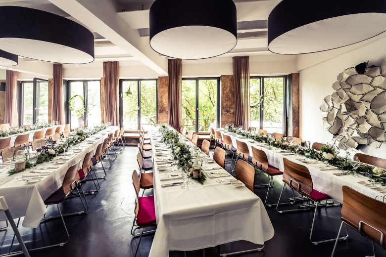 Bis zu 80 Personen feiern Sie in einem bezaubernden Ambiente direkt am Fluss einen