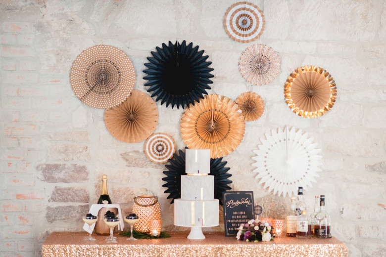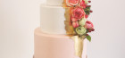 Preisbeispiel für semi-naked 25-30Personen, 2stöckig, Blumendeko, runterlaufende Schokolade, Macarons, Blattgoldflocken