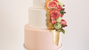 Preisbeispiel für semi-naked 50-60Personen, 3stöckig, Blumendeko, runterlaufende Schokolade, Macarons, Blattgoldflocken
