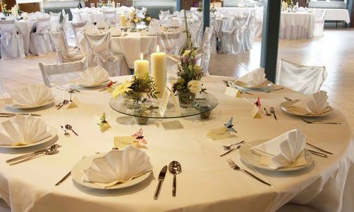 Unser Team berät Sie gerne und übernimmt auf Wunsch auch die Organisation.Bis zu 250 Gäste finden in unserem Festsaal Platz - wir bieten damit genug Raum für Ihre Veranstaltungen und können die Festlichkeit nach Ihrer Vorstellung gestalten. Aber auch die anderen Räumlichkeiten sowie die Terrasse können flexibel gestaltet werden.