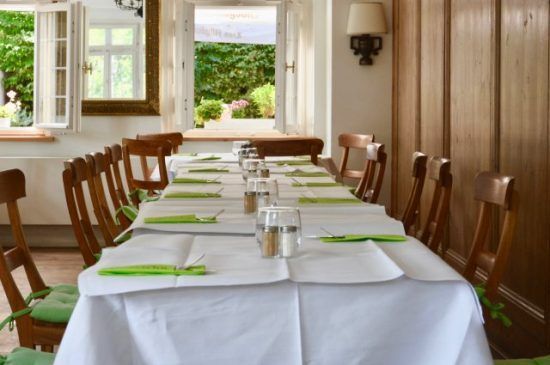 In unserem Restaurant richten wir gern Ihre Feier aus: egal ob Taufe, Konfirmation oder Hochzeit – die hübsche Kirche am See ist nur wenige Schritte entfernt und bietet einen romantischen Rahmen für Ihren Anlass. Um den kulinarischen Teil kümmert sich unser Team; vom Sekt-Empfang in unserem Außenbereich bis zum festliches Buffet – wir setzen Ihre Wünsche und Ideen gerne um. Das erfahrene Service-Personal wird Ihren Anlass angemessen begleiten, sowohl bei Geburtstagsrunden als auch bei Trauergesellschaften. Unser Restaurant bietet Platz für bis zu 80 Personen; der Außenbereich fasst bis zu 100 Personen.
